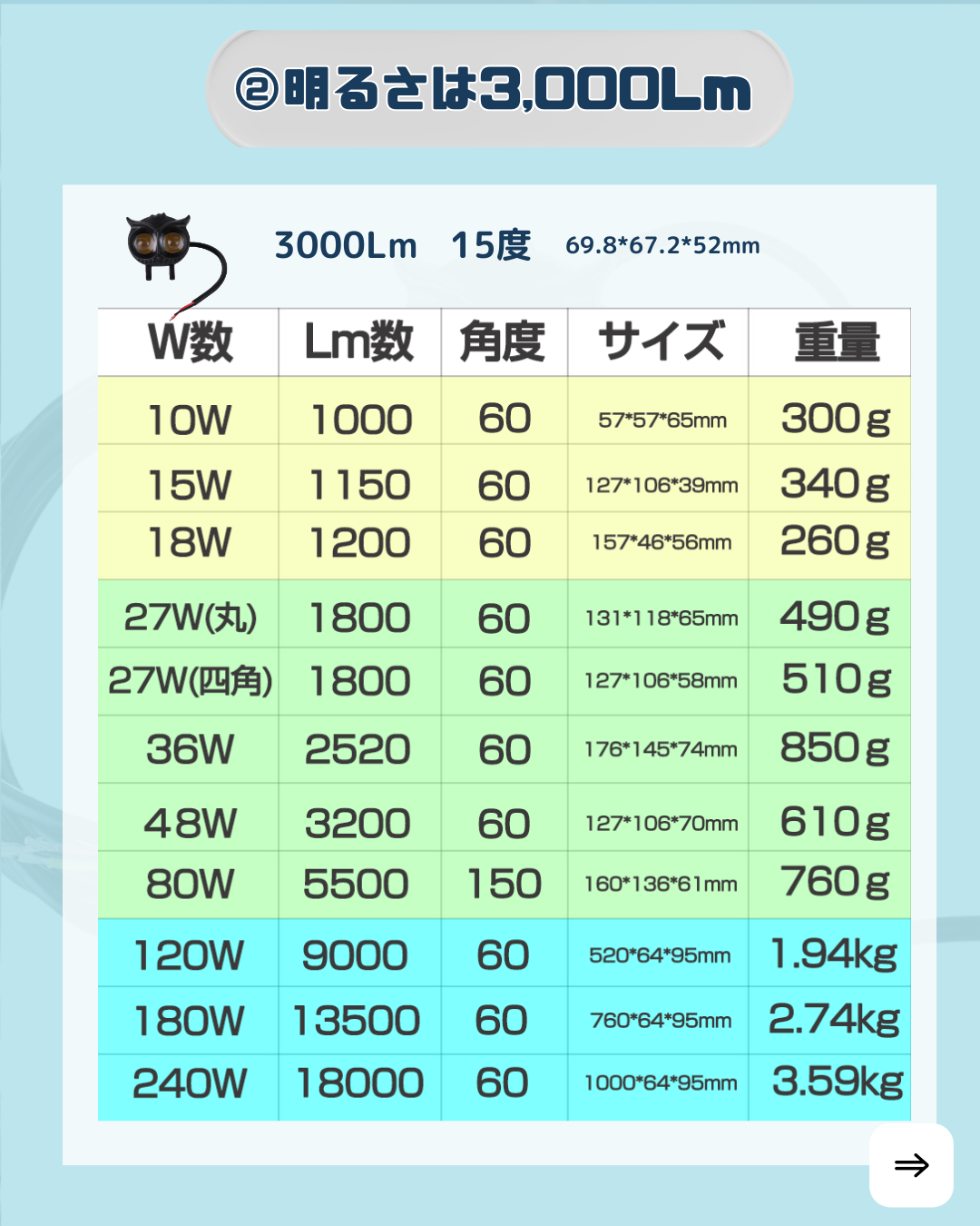フクロウ型2色仕様作業灯-30w作業灯